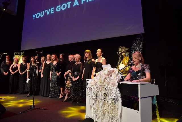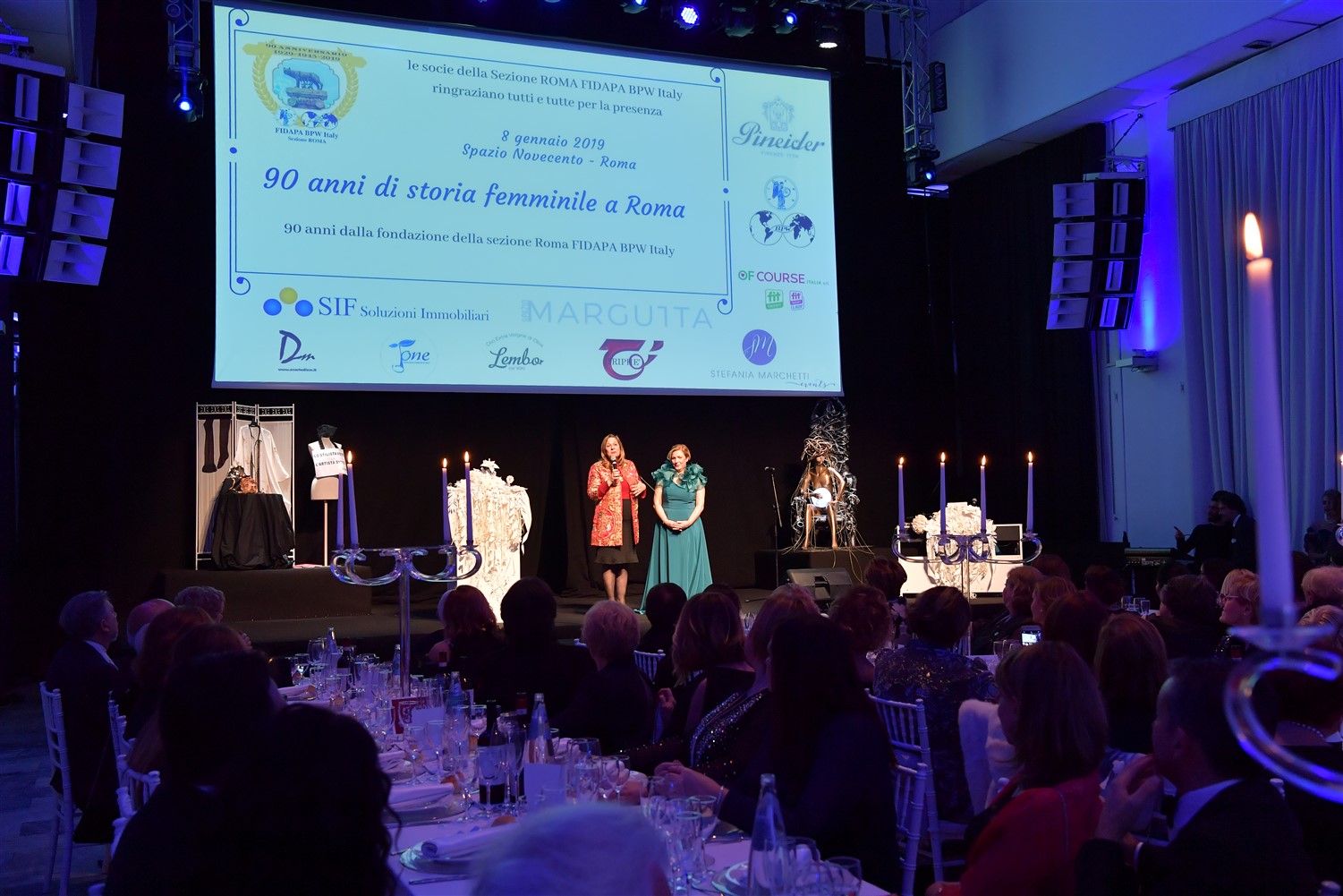 La giornata ha visto la sua parte celebrativa e festosa alla Cena di Gala, Cerimonia delle Candele, organizzata presso lo Spazio Novecento, location scelta per poter coniugare l’esigenza di realizzare un evento elegante e moderno che consentisse di dare il benvenuto a più di 280 ospiti e fare da cornice alle 28 nuove socie che hanno fatto il loro ingresso in questa occasione. Il pubblico si è divertito con la performance di Matteo Belli su “il tortellino in the world”, commosso con il racconto di Katia Pietrobelli, emozionate con la Cerimonia delle Candele ed il video che ha raccontato chi fossero le nuove socie, che hanno avuto l’onore di ricevere il loro PIN associativo dalle Autorità presenti. Un momento speciale il debutto commosso delle socie che hanno aderito al progetto FIDAPA ROME Singing Sisters – il primo coro della sezione. La canzone You Got a Friend, il video a cornice, la chiusura con il linguaggio dei segni per includere tutte e tutti nella festa, ha commosso tutti. Le lacrime si sono trattenute a stento con le performance canore di Letizia De Luca e Giovanna Gattuso.