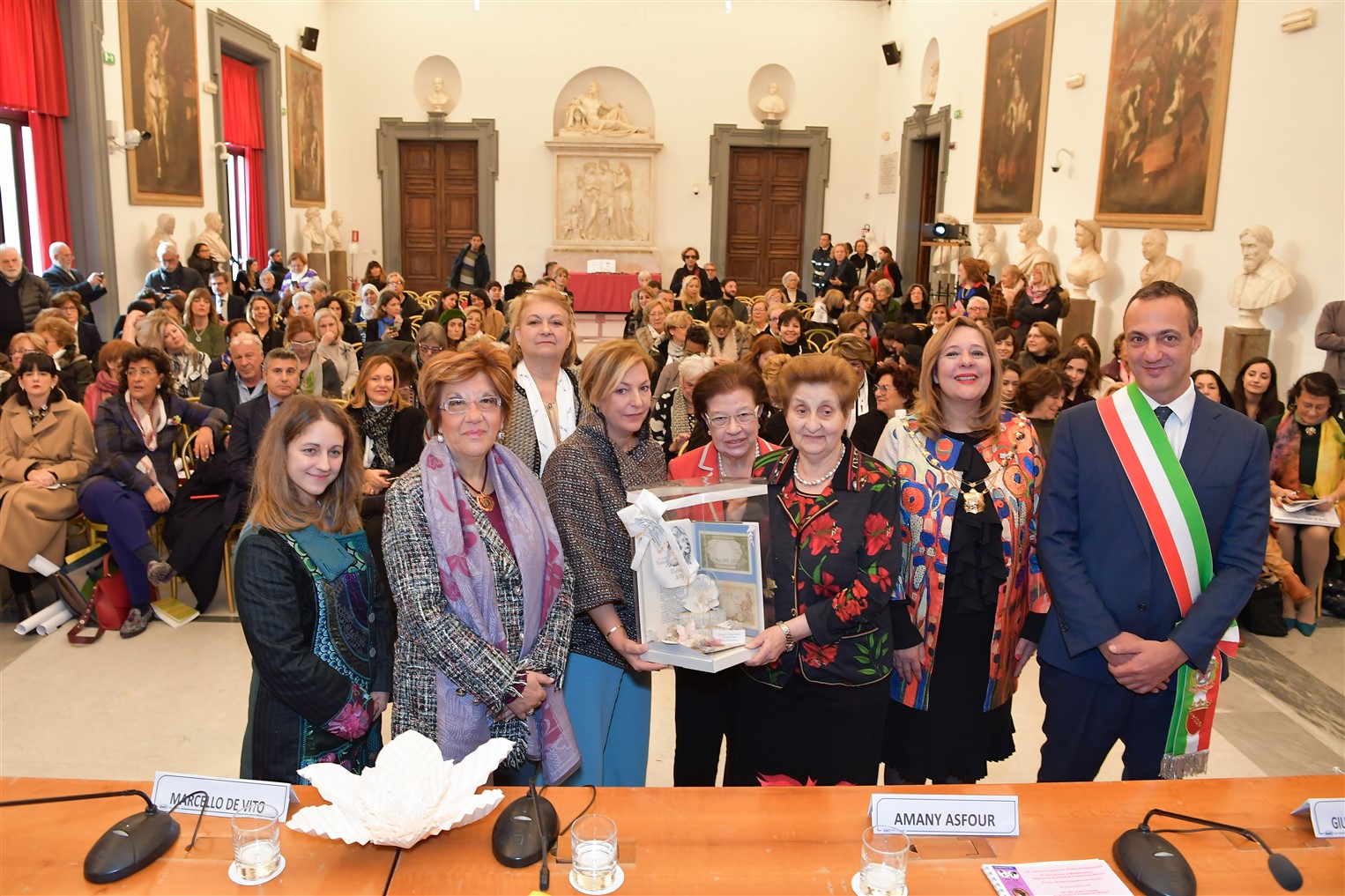 Di particolare prestigio è stato il momento del conferimento del Premio Donna FIDAPA Adele Pertici Bacci, assegnato a “Donne” speciali che incarnano i valori e le attitudini della mission “FIDAPA”. Alla presenza del Presidente dell’Assemblea Capitolina – Roma Capitale On.le Marcello De Vito, il premio realizzato da Alessandra Mancini di Eventi Atelier è stato conferito a : Mariella Enoc – Presidente Ospedale Pediatrico Bambino Gesù di Roma ; Adele Zannoni Messina – Socia Fidapa, Professoressa delle Università Pontificie, Avvocato dei Tribunali Apostolici; Claudia Limonta Rovagnati – Imprenditrice; Elena Luviso – Presidente ADECOC ASVISAL VENTO DEL SUD, Giurista Informatica, Giornalista, Autrice di molteplici libri; Manuela Maccaroni – Presidente Ass. Nazionale Avvocati per i Minori e le Famiglie, Ass. degli Avvocati Matrimonialisti e per le Famiglie di Fatto, Magistrato Onorario, Criminologa; Roberta Giusti Fontana – Fondazione Micol Fontana; Takoua Ben Mohamed – Giovanissima fumettista interculturale, Novellista grafica, Imprenditrice e Simonetta Di Pippo – Astrofisica, Direttore dell’Ufficio delle Nazioni Unite per gli Affari dello Spazio extra-atmosferico. Hanno premiato, oltre alle autorità presenti, Livia Turco, Maria Pia Garavaglia, Elena Marinucci, Daniela Colombo, Grazia Marino, Sarah Nappini.
